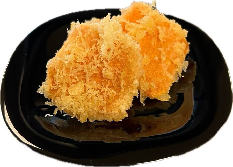 Gefrituurde garnaal,geflambeerde kaas en masago